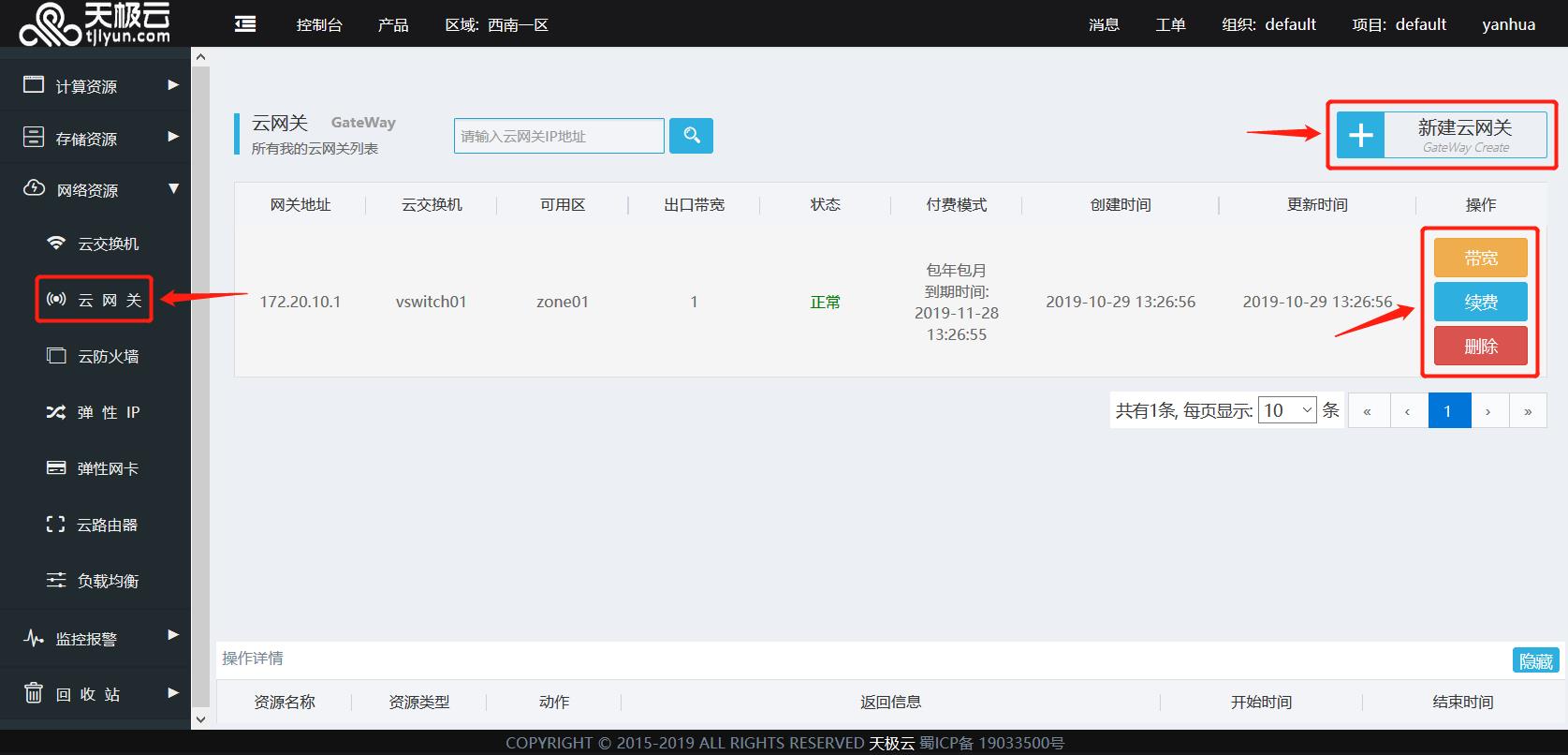 云网关,用于连接云主机内部网络和外部网络。云网关主要用于云主机访问外部网络通信,云主机访问外部网络的带宽受限于云网关的带宽。当云主机 需要绑定弹性IP时,也需要云网关的支持。