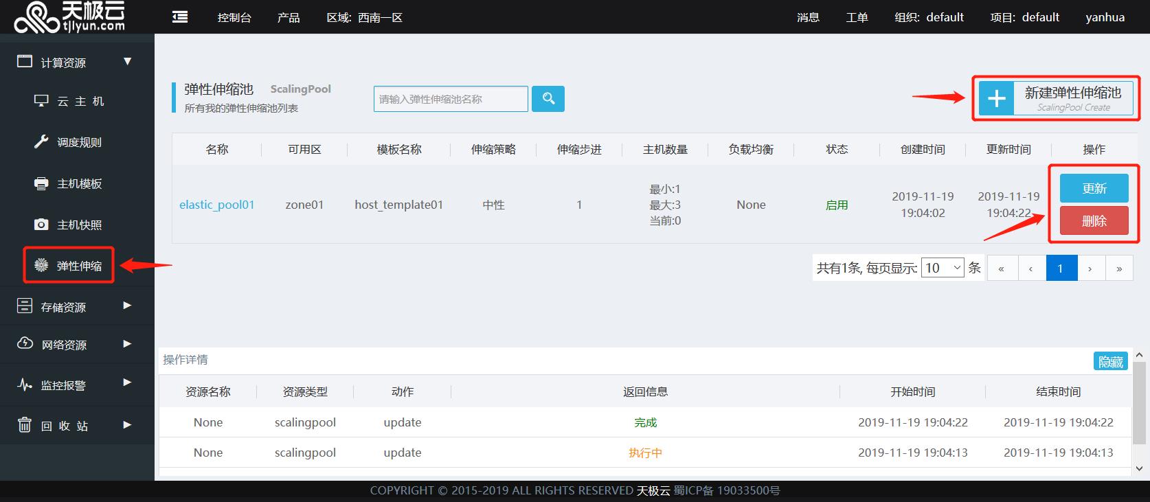 弹性伸缩,用于根据上层应用负载,快速扩容或缩容云主机,以满足业务系统在不同时段的访问请求,同时提升用户云资源使用效率。创建弹性伸缩池 后,系统会根据用户配置的弹性伸缩池相关参数自动调节弹性伸缩池容量。扩容时,系统会根据配置好的主机模板,克隆云主机加入伸缩池中,缩容时,系统会自动关闭并删除伸缩池中的部分云主机。通过以上扩缩容操作,以使弹性伸缩池始终处于满足业务系统访问的合理状态,在满足业务系统访问负载的情况下最大化提升了用户云资源的使用效率,节省用户使用云资源的费用。