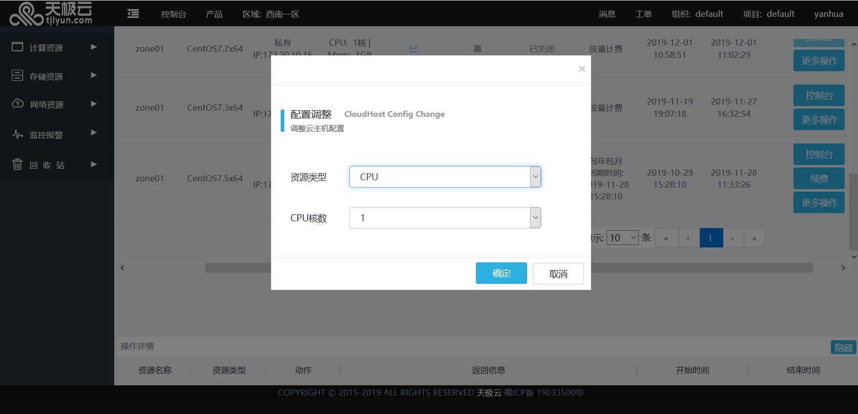 热添加,指在云主机运行的情况下,添加各种硬件资源进行纵向扩容。当前支持热添加的硬件资源包括CPU、内存、硬盘、网卡,用户可根据实际业务运行情况进行资源热添加。